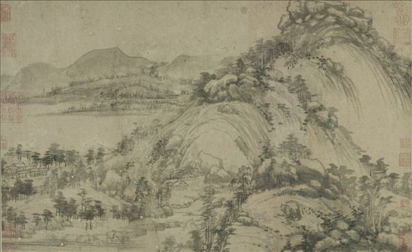 元·黄公望《天池石壁图》轴,绢本设色,纵139.4厘米,横57.3厘米,现藏故宫博物院。